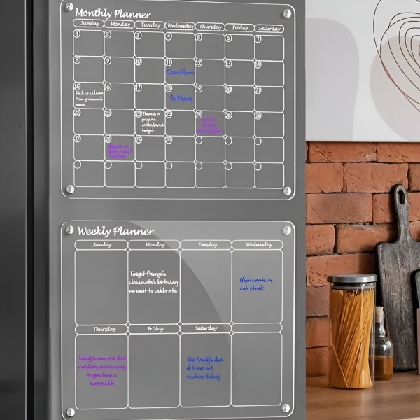 Designul său elegant, din acrilic transparent, nu numai că adaugă o notă modernă bucătăriei dvs., dar oferă și o modalitate eficientă de a vă gestiona activitățile zilnice.