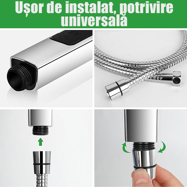 Compatibilitate: Potrivire universală pentru toate furtunurile de duș standard