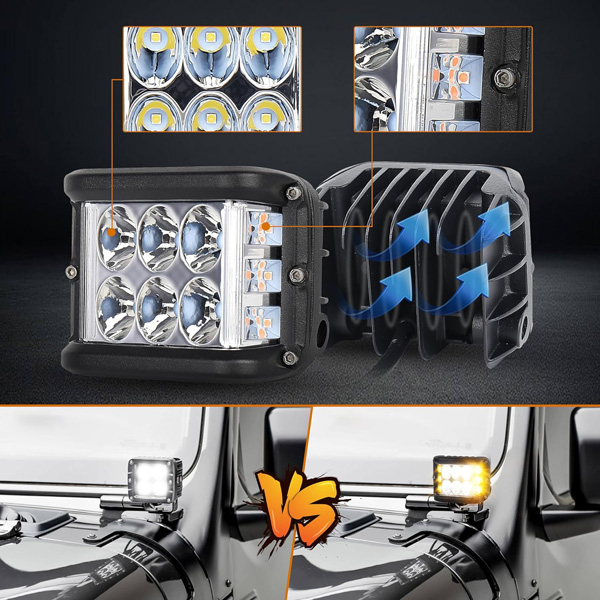 Conducerea pe timp de noapte sau în condiții de ceață poate fi dificilă. Cu o putere LED de 6W și o temperatură de culoare de 6000K + 3000K, aceste proiectoare oferă o luminozitate excepțională și îmbunătățesc vizibilitatea, sporindu-vă încrederea și siguranța pe drum.