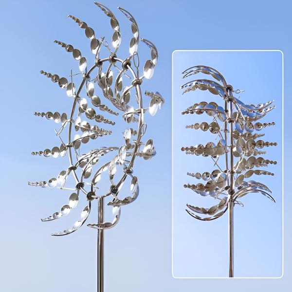 🌬️ Designul său cu lamă dublă creează un afișaj fascinant, rezistând în același timp zilelor cu vânt puternic, perfectă pentru un decor exterior fără efort.