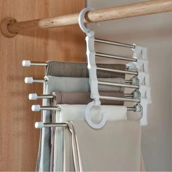 Nu mai așteptați! Îmbunătățiți organizarea garderobei dvs. și economisiți spațiu cu acest excepțional cuier pentru pantaloni pe 5 niveluri.