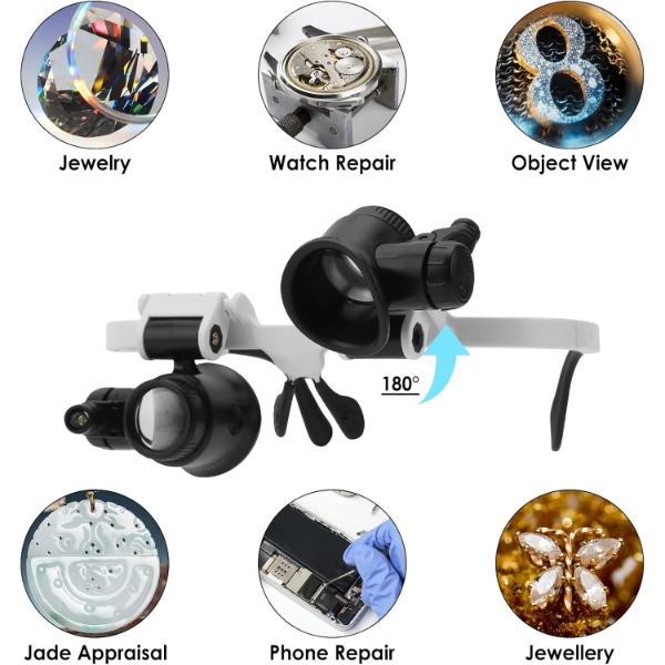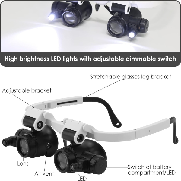 Echipată cu două lumini LED reglabile, această lupă asigură iluminare optimă în medii cu lumină scăzută pentru o vizualizare mai clară.