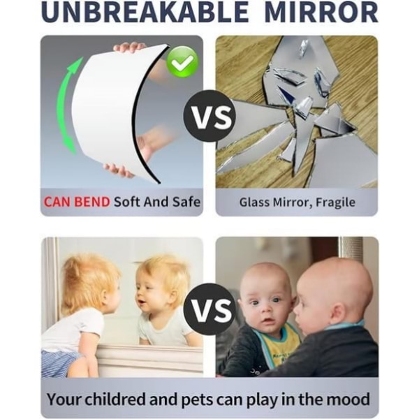 Fabricată din polistiren, această oglindă este sigură, flexibilă și nu se va sparge dacă este scăpată.