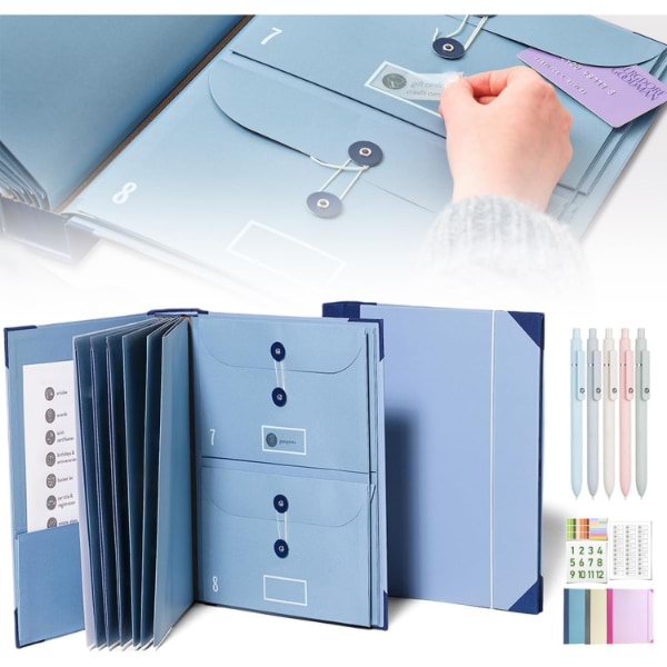 Include 10 plicuri extensibile (6 de dimensiune completă, 4 de jumătate de dimensiune) pentru a ține până la 10 foi fiecare.