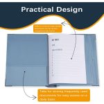 Include 10 plicuri extensibile (6 de dimensiune completă, 4 de jumătate de dimensiune) pentru a ține până la 10 foi fiecare.