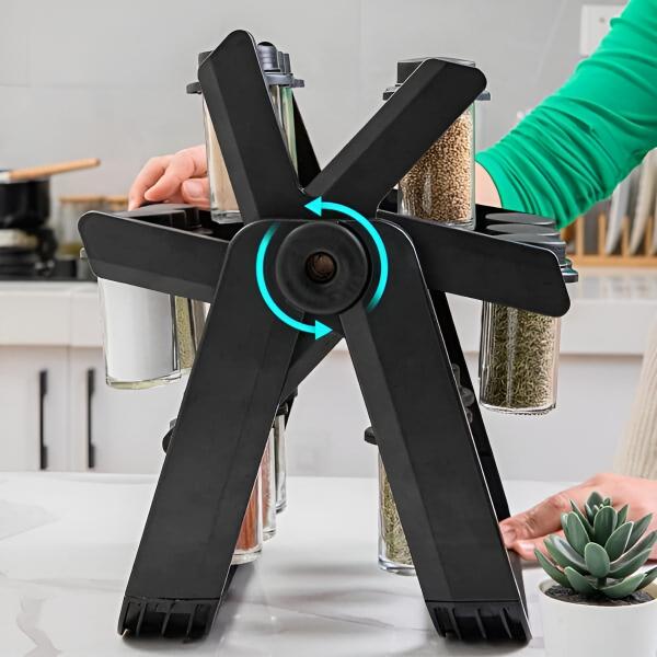 Accesați fără efort condimentele dvs.! Suportul rotativ pentru condimente se rotește ușor, permițându-vă să găsiți instantaneu borcanul de care aveți nevoie.