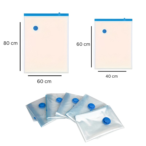 Rămâneți fără spațiu de depozitare? Economisiți până la 80% spațiu cu sacii noștri de depozitare în vid! Pur și simplu împachetați – sigilați – și aspirați aerul pentru a reduce articolele voluminoase precum hainele, păturile și lenjeria de pat. Mai mult spațiu, mai puțină dezordine!