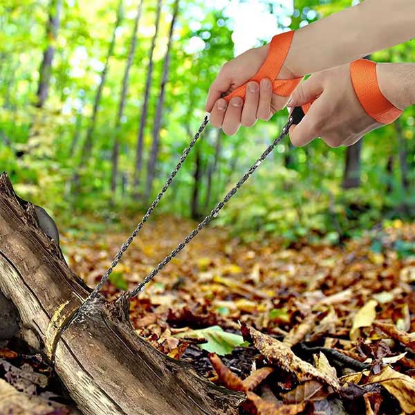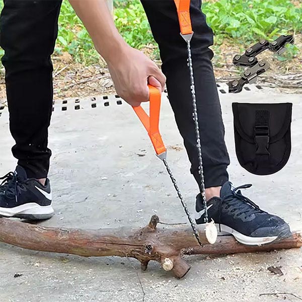 Compact și ușor, acest ferăstrău cu lanț încape ușor în rucsac. Esențial pentru camperi și excursioniști pentru a strânge rapid lemne de foc și a pregăti locurile de campare.