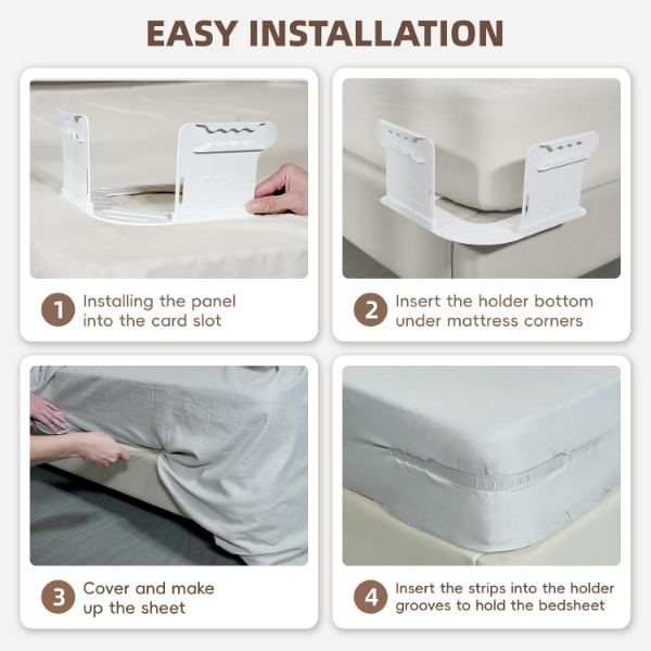 Te-ai săturat să te trezești încurcat în cearșafuri desfăcute? Aceste suporturi le blochează în loc, astfel încât să puteți dormi netulburat și să vă treziți într-un pat neted, fără riduri.
